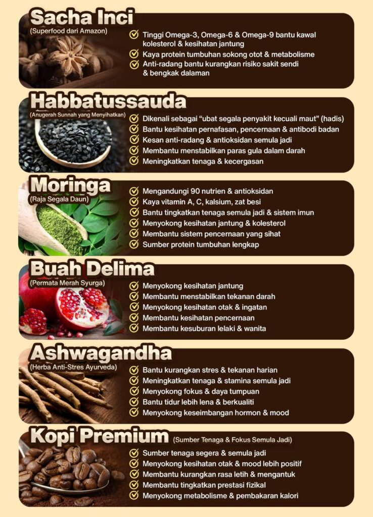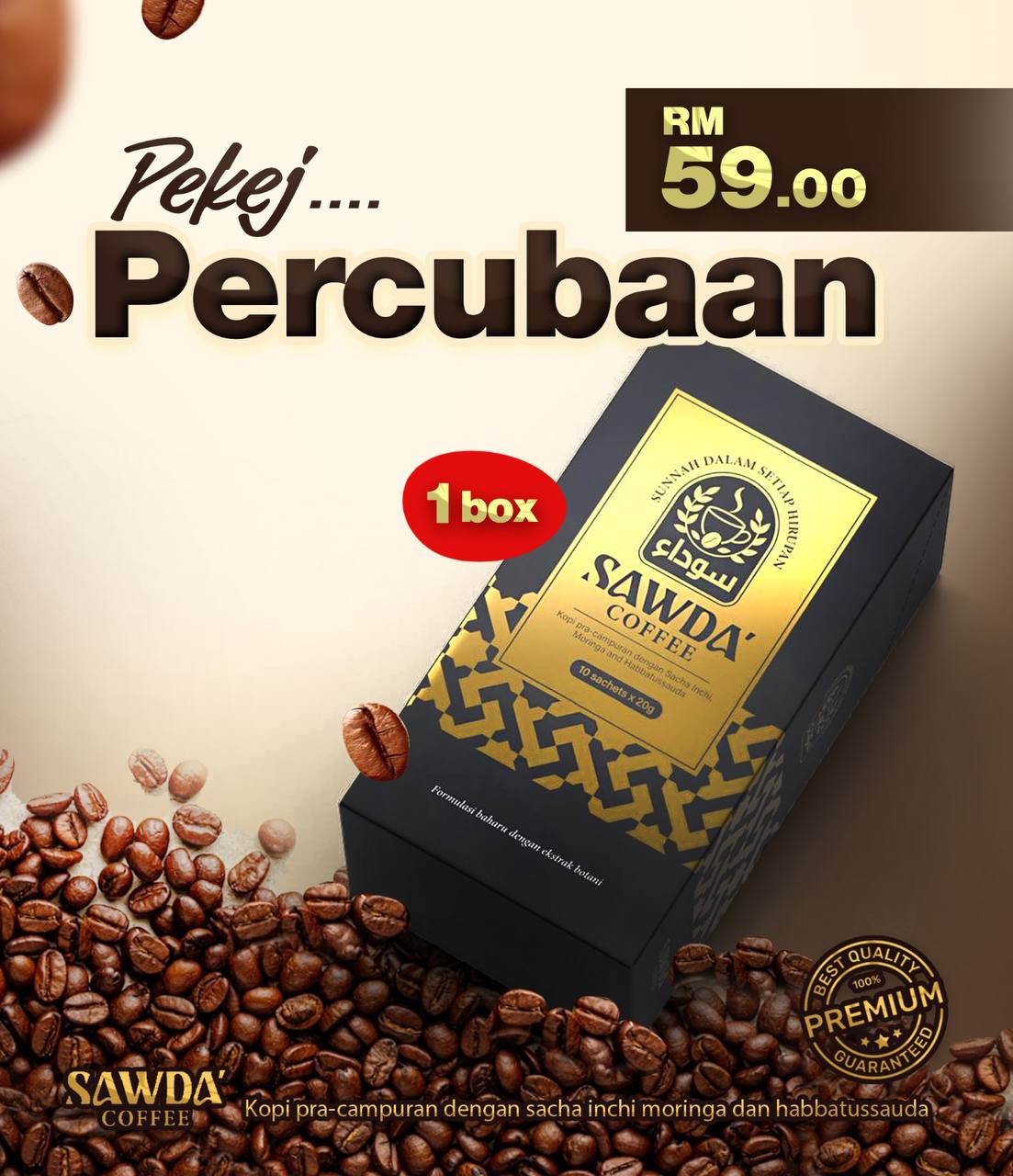 Kopi SAWDA adalah minuman kopi yang diperkaya dengan ekstrak moringa, sacha inchi dan habbatussauda yang terkenal dengan pelbagai manfaat kesihatan. Ia membantu meningkatkan tenaga dan menyokong sistem imun badan.